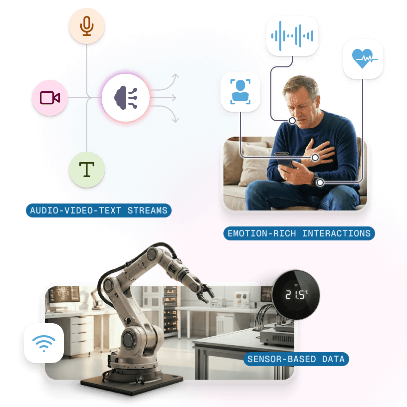 We collect speech, image, video, text, and multimodal datasets, including specialized formats like egocentric POV videos, gesture datasets, emotional tone recordings, and sensor-based data for robotics and IoT.