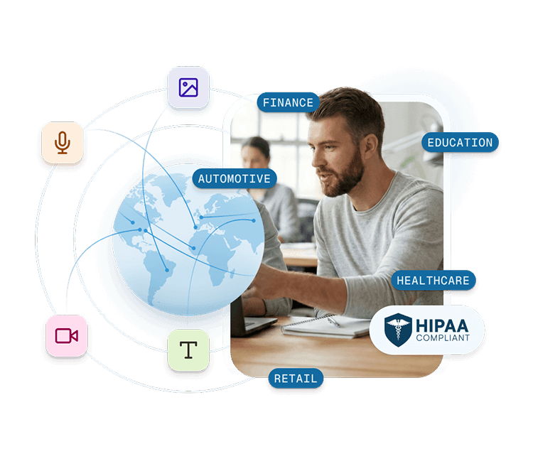 ISO-certified processes with GDPR and HIPAA compliance for sensitive data handling.
